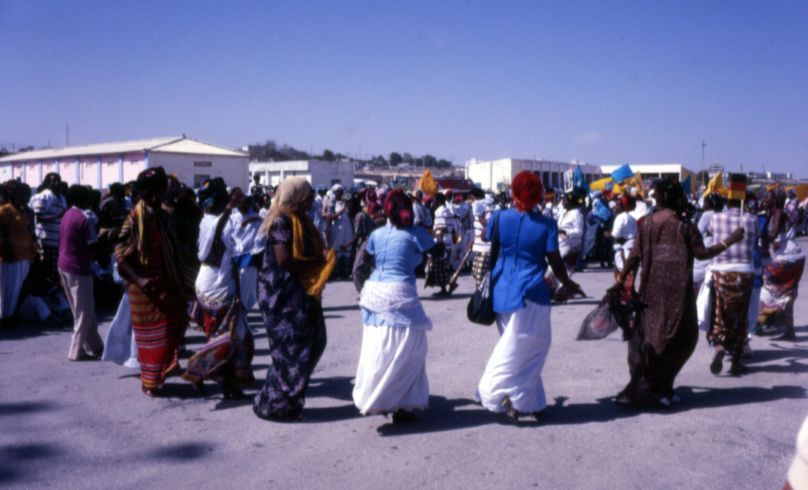 Üblicherweise fand ein solcher Emfang in der Residenz des Botschafters oder der Botschafterin statt, dauerte ca. zwei Stunden und natürlich gab kleine Häppchen und Getränke. An dem besagten 15. März 1988 gab es zwei Höhepunkte: An einem somalischen Paradeplatz stellten sich alle Autos mit ihren Insassen auf und fuhren bewacht durch somalisches Militär auf das Flugplatzgelände. Dort stellten wir uns hinter einer Barriere auf und genossen somalische Tanz- und Musikbeiträge. |